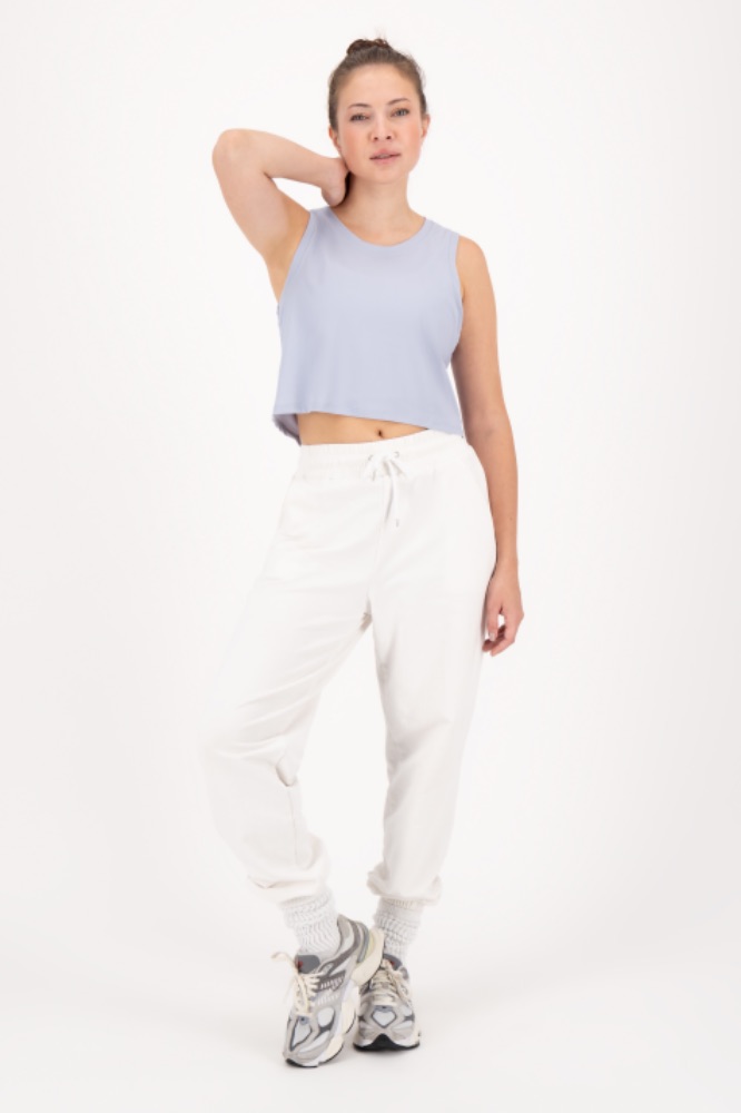 PANTS TIRO ALTO, RESORTE EN CINTURA, RESORTE EN TOBILLOS, BOLSAS LATERALES.