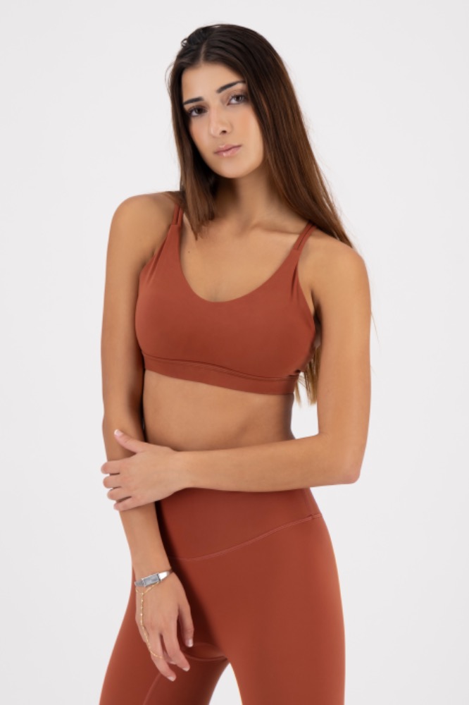 SPORTSBRA CON TELA SUAVE Y COMPRESION MEDIA, COSTURA FRONTAL FRENTE REGULAR Y REDONDO, RESORTE DELGADO, ESPALDA CRUZADA. RELLENO REMOVIBLE.