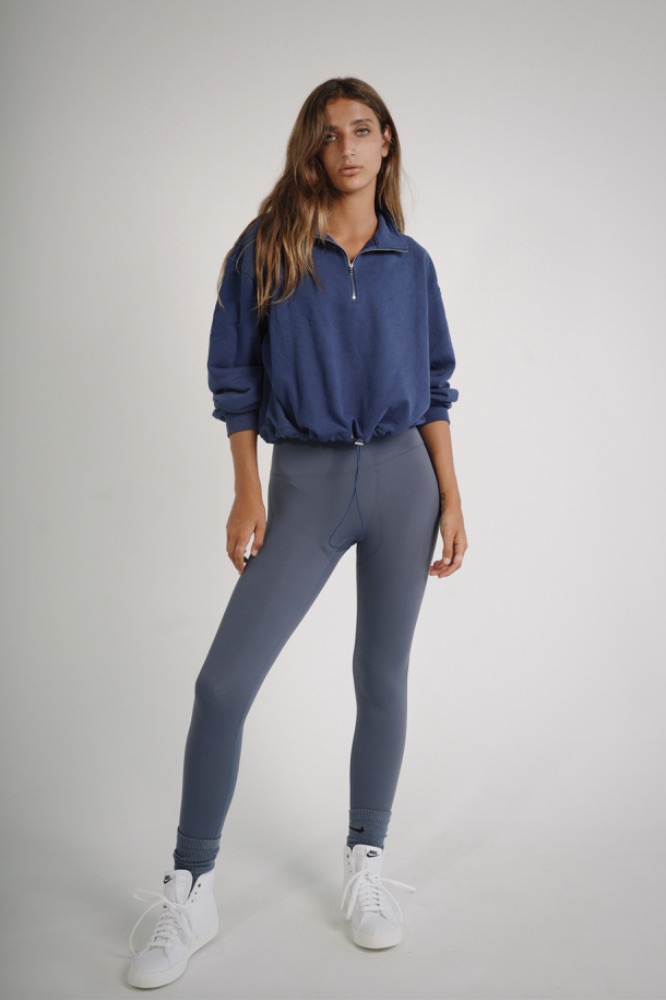 HOODIE VERSATIL Y DELGADA CON MEDIO CIERRE, CORTE A LA CADERA CON RESORTE AJUSTABLE.
